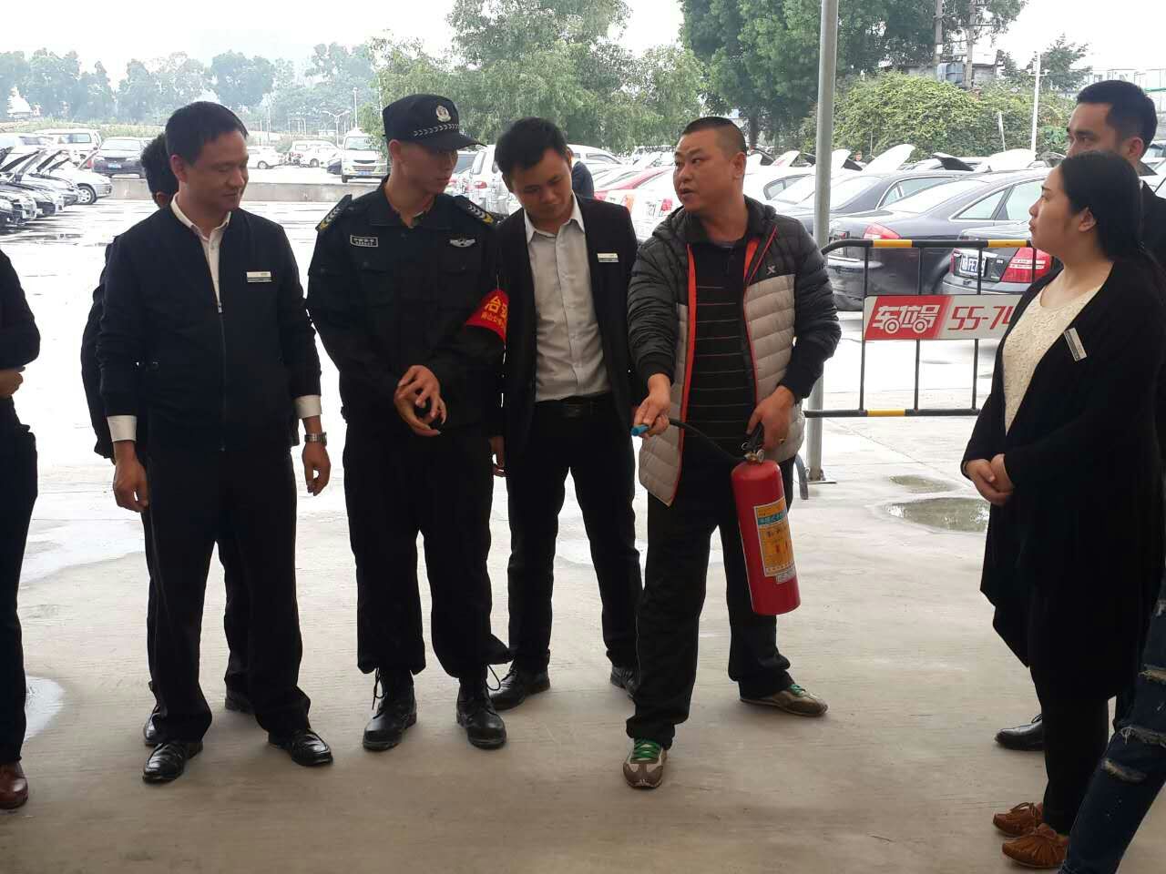 为普及消防安全知识,增强公司职工的的消防安全防范能力。2016年1月4日上午9时,。我公司驻优信拍(北京)科技信息有限公司组织开展了保安员消防演练活动,优信拍信息科技有限公司优信拍南区总经理井文兵及我公司总经理柳栋、副总经理周清云及各部门经理等有关领导到现场进行观摩。公司驻优信拍信息科技有限公司项目部共10余名保安员参加此次消防演练活动。